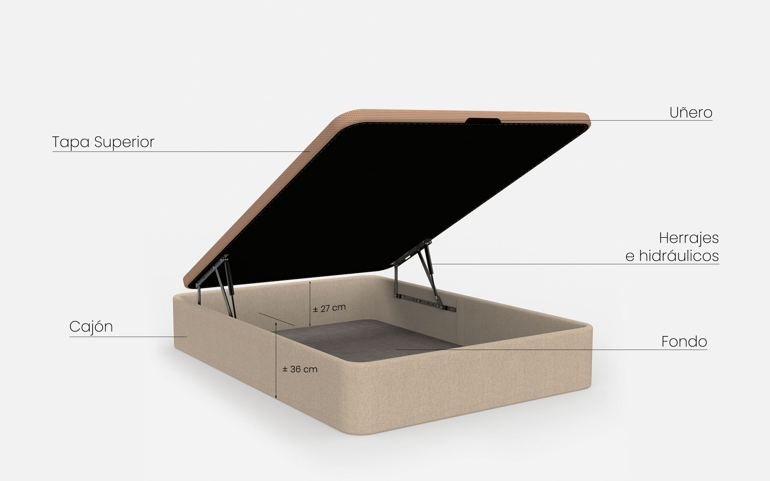 *Los canapés se servirán dúos cuando midan entre 160 cm y 200 cm de ancho. La tapa es partida para facilitar el transporte y acceso.