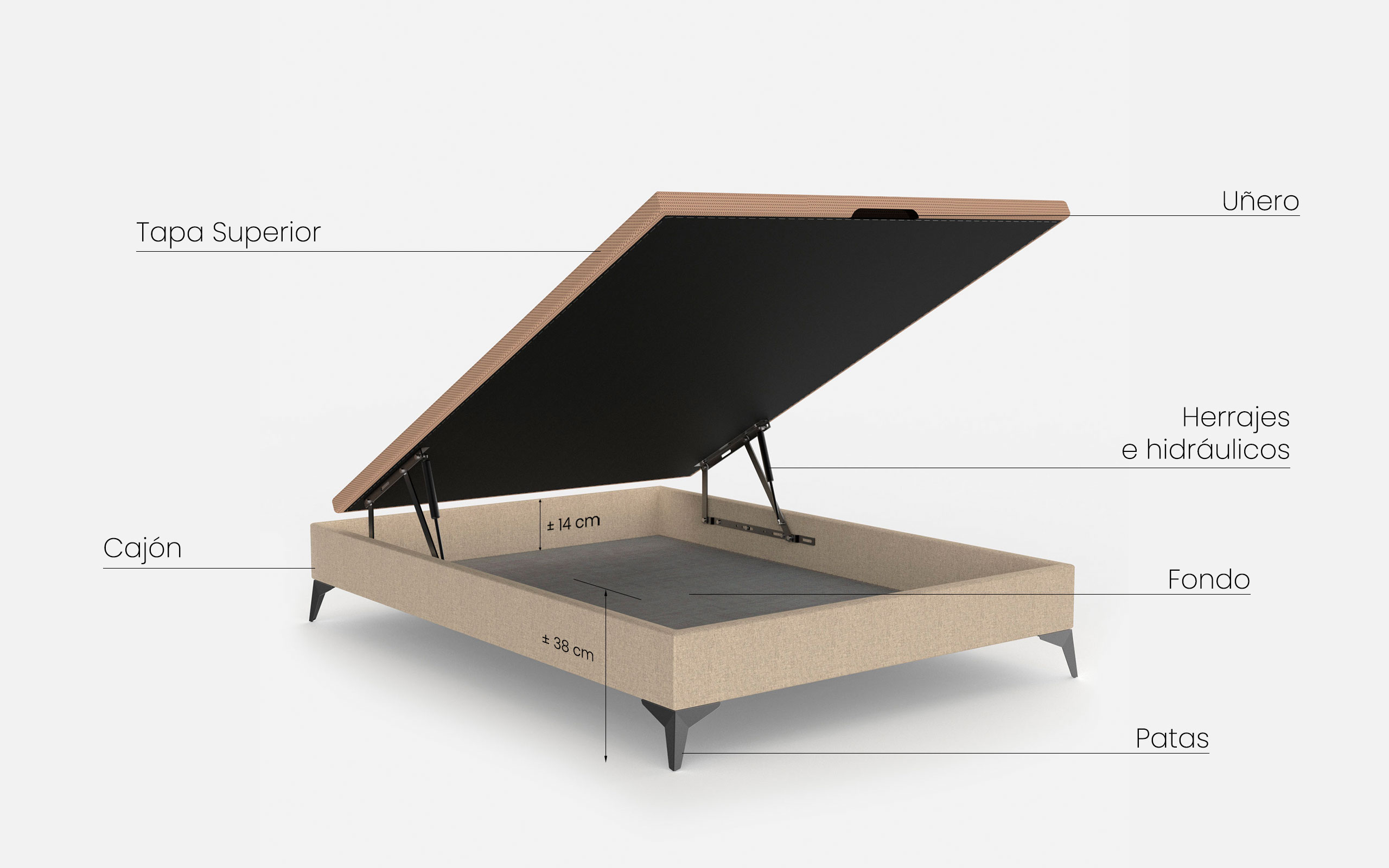*Los canapés se servirán dúos cuando midan entre 160 cm y 200 cm de ancho. La tapa es partida para facilitar el transporte y acceso.